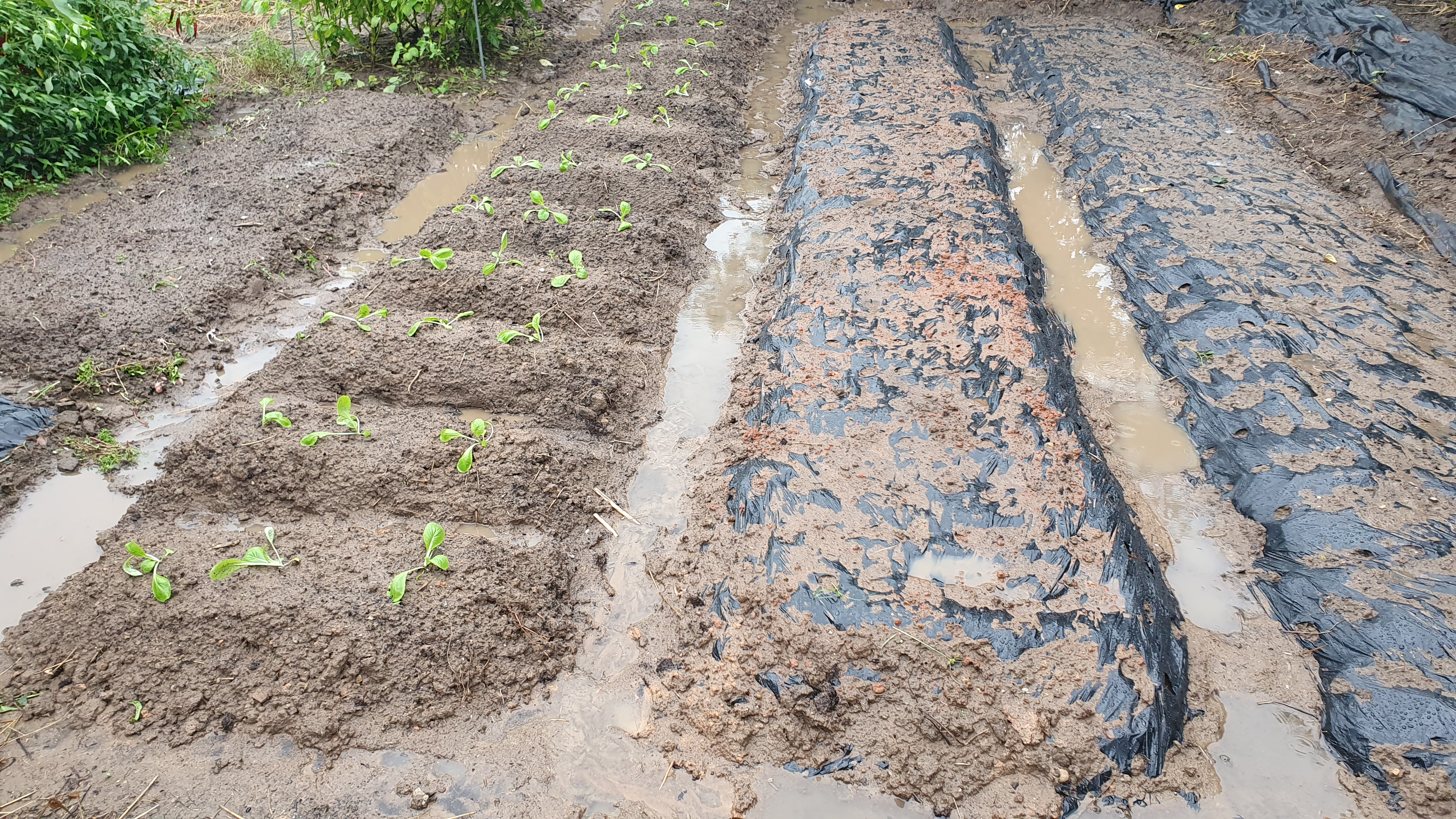 물이 잘 빠지는 밭인데도 비가 갑자기 워낙 오다보니 고였습니다.